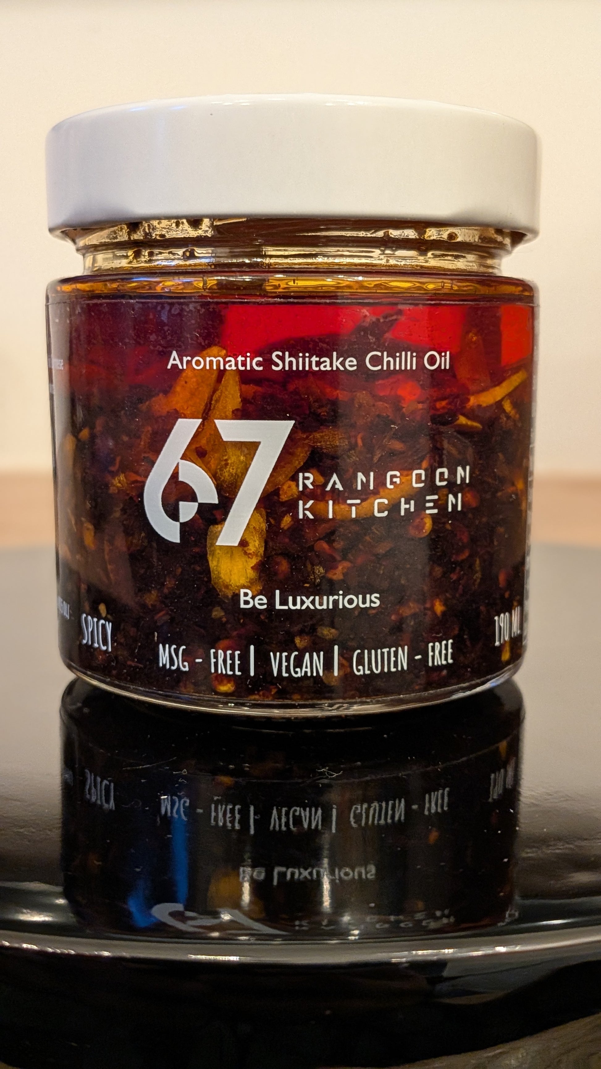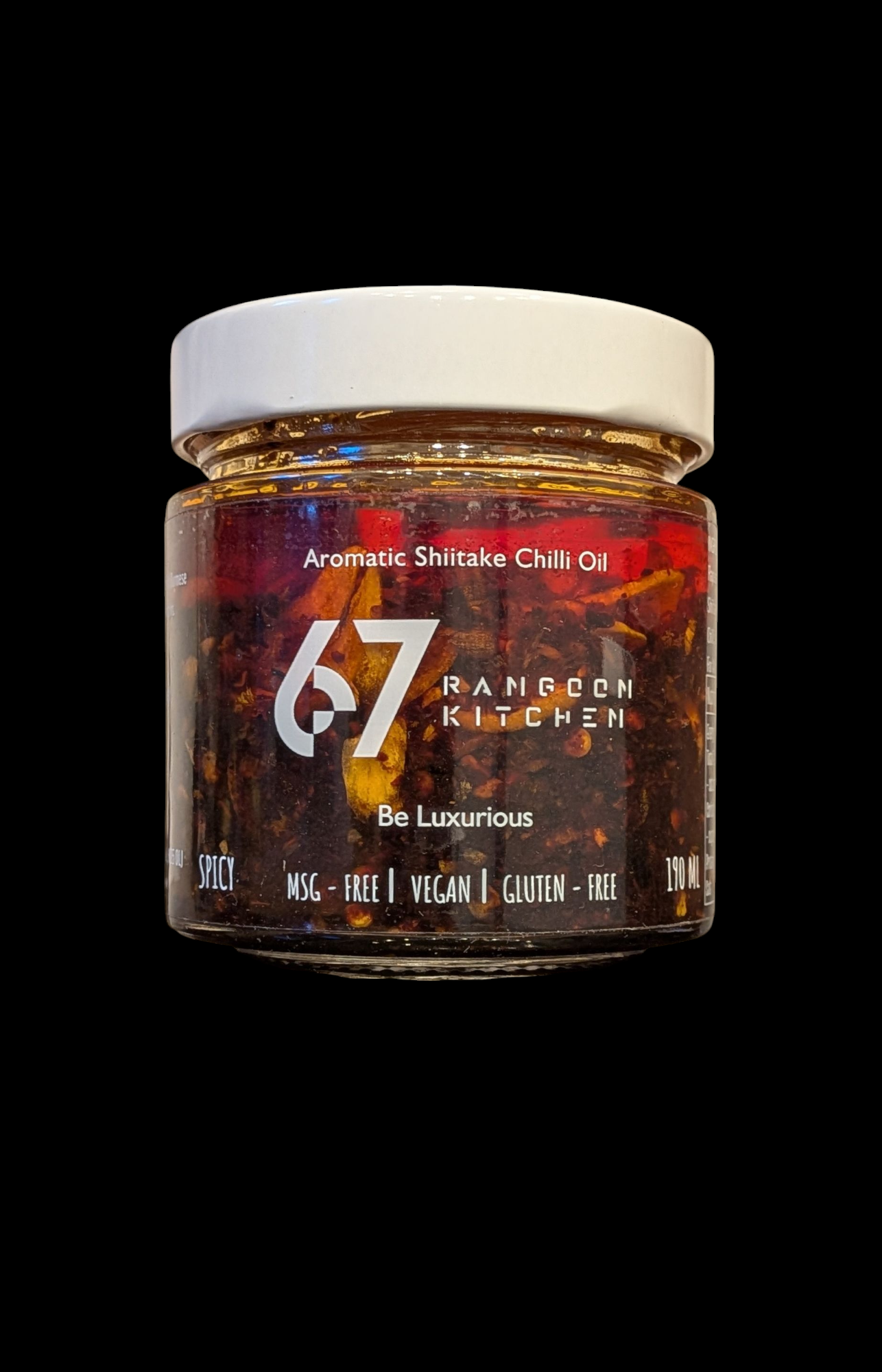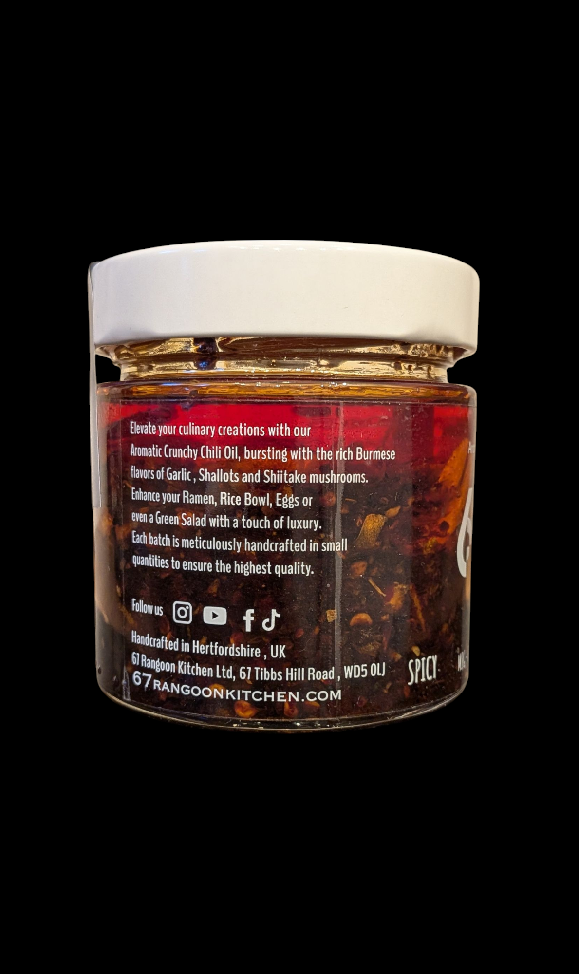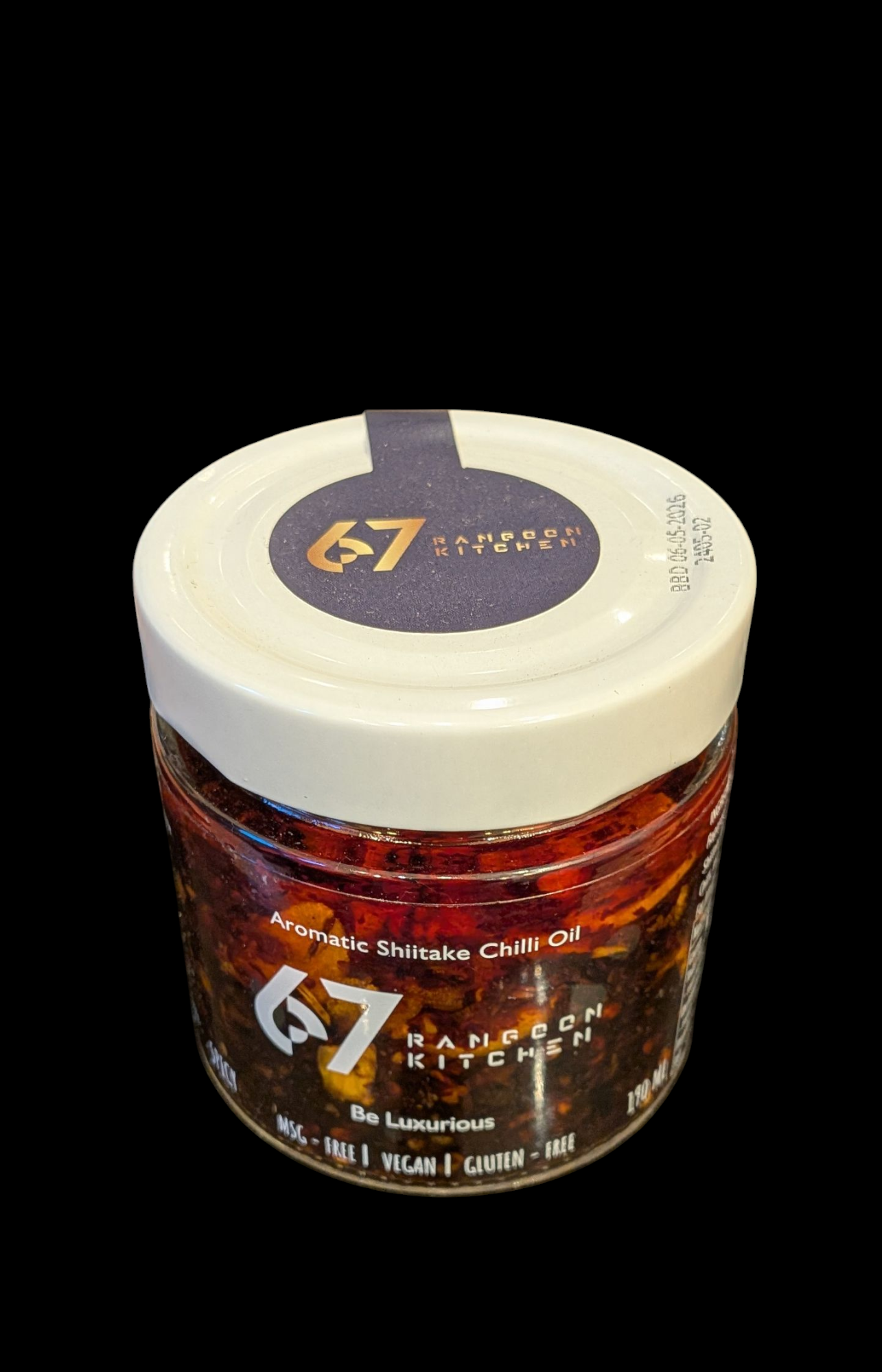 Aromatic Shiitake Chilli Oil is crafted with carefully selected chilies, premium shiitake mushrooms, banana shallots, and an abundance of fresh garlic. This meticulous combination ensures the best taste of chili, enriched with exquisite spices.